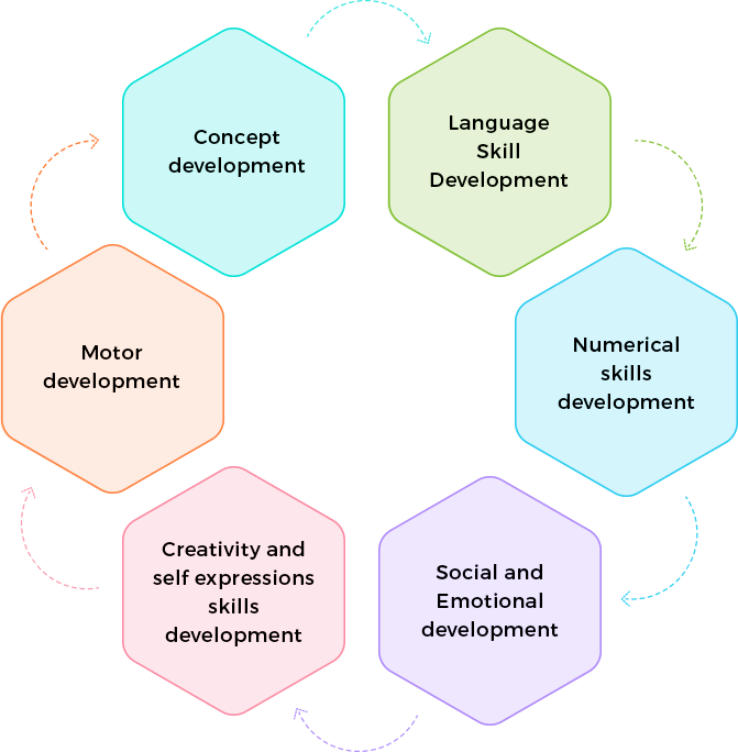 Primary school years are the crucial years that lay a foundation to a life-long journey of learning, hence aptly called as the Early Years Foundation Stage. The curriculum focuses on play-way method with the epicenter being the key areas of learning: physical, personal, social and emotional development; literacy skills; numeracy skills; understanding the world through enquiry; and expressions through art, music and dance. The curriculum provides a balance of daily teacher-directed activities and child-directed activities that make learning fun.